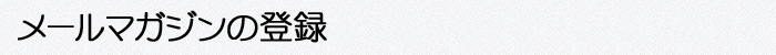 | 登録のご注意 | 携帯電話で受信される方は登録前に受信設定をご確認下さい。 詳しくは登録のご注意をご確認下さい。 メールマガジンの登録は無料ですが、接続料、通信料はお客様のご負担となります。 ※メール受信通信料軽減のためテキスト版での配信を心がけております。 |