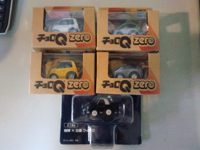 チョロQ ZERO・・Z-22 トヨタ プリウス(緑)/(紫)、Z-23 Honda N-ONE(白)/(黄) 各1000円。Z-18e 相棒×日産フィガロ 1600円。