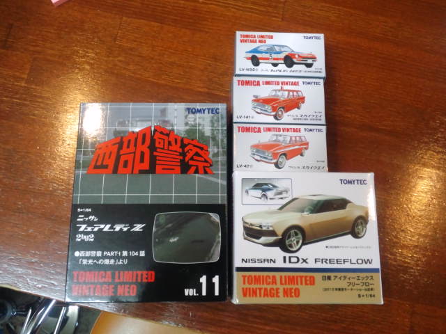 トミカリミテッドヴィンテージ・・LV-47cプリンススカイウェイ(ピンク) 1700円、LV-141a プリンス スカイウェイ(消防査察広報車) 1700円、NISSAN IDx Freeflow 2013 TOKYO